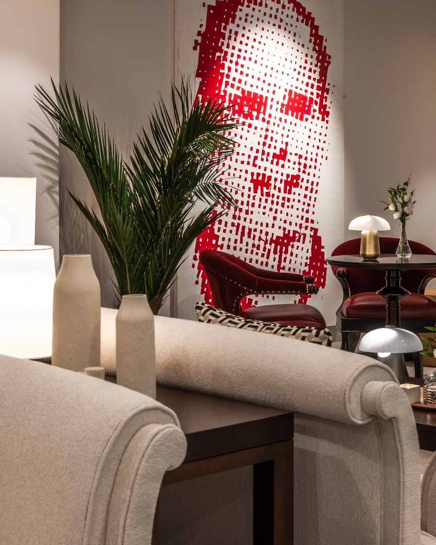 Much of what I’m influenced by is from yesteryear: classic cars, elegant fashion, old movies and, of course, the world of Formula 1 with its strong colours and iconic brands. I like my work to be bold, clean, playful and elegant, to produce positive feelings. Since living on the Riviera, my palette has been inspired by the sky and Mediterranean light, using violets, blues, pinks and oranges. Boats and yachts, “Belle Époque” architecture, vintage champagne buckets and vintage photography books unearthed in antique markets on the Côte d’Azur also nourish my visual world, a blend of nostalgia and elegance… Living here has transformed my art: working with luxury hotels, observing terraces, the Croisette, the Place du Casino, watching the Historic Grand Prix, even palm trees inspire me every day.